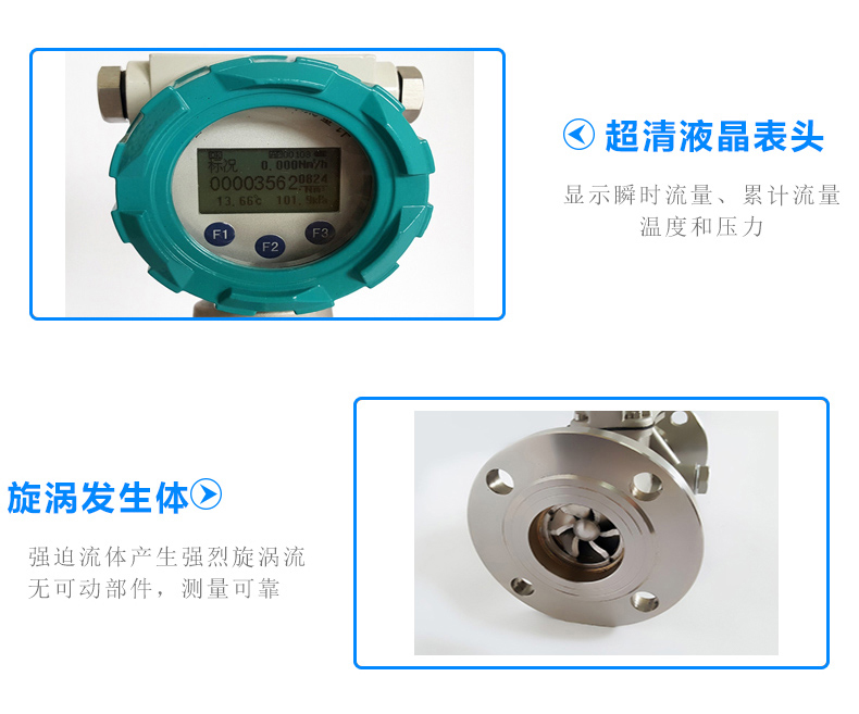 旋進(jìn)旋渦流量計(jì)集流量、溫度、壓力檢測(cè)功能于一體,并能進(jìn)行溫度、壓力、壓縮因子自動(dòng)補(bǔ)償,是石油、化工、電力、冶金等行業(yè)用于氣體計(jì)量的理想儀表。